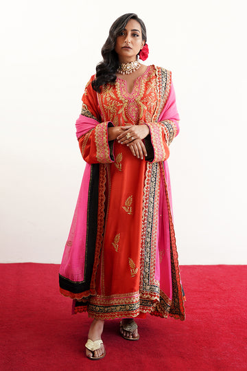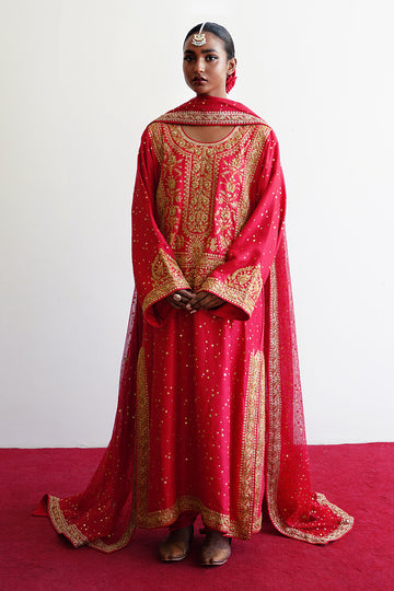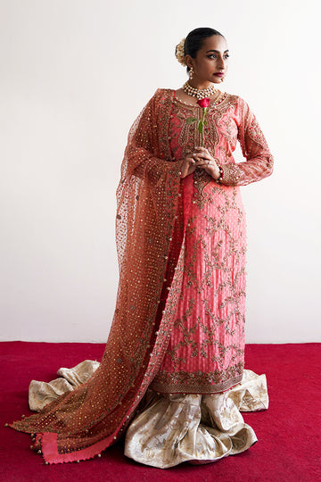 MEHRUNNISA is a bridal ensemble crafted from luxurious cotton net, featuring a farshi gharara that...
