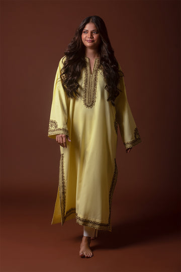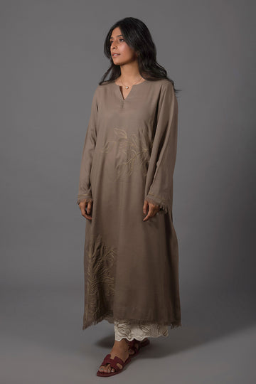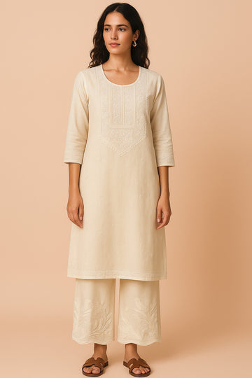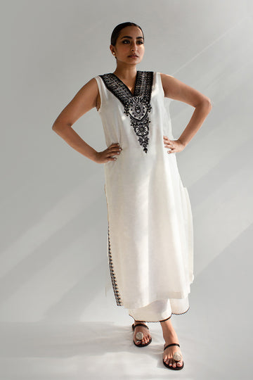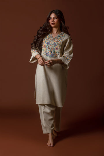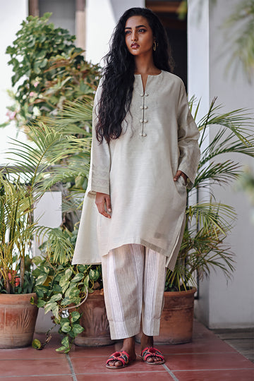 EVERYDAY ESSENTIALS - A meticulously crafted piece, the appliquéd and dori-worked kurta in Irish linen...
