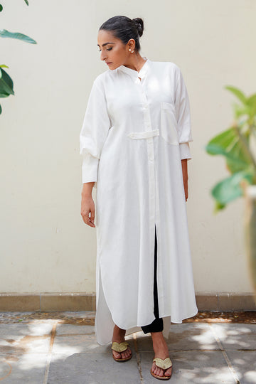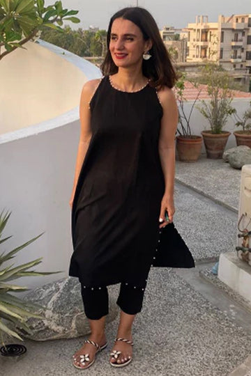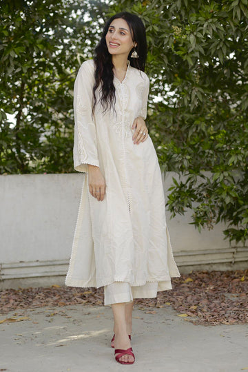The Alara Appliqué Kurta embodies playful modernity through a canvas of Irish linen, detailed with...
