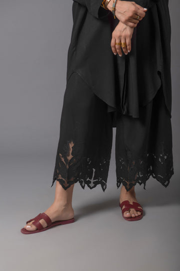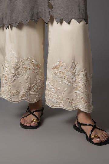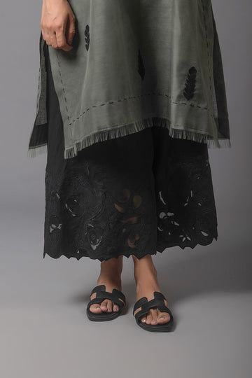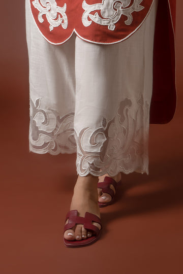 Fine cotton and organza embroidered appliqued Azaar pants.