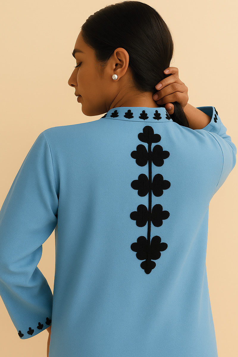 Sun-kissed days call for breezy elegance.Meet our latest must-have: the Aysel Set in Powder Blue — a two-piece wonder designed to light up your summer wardrobe.With its bold black detailing and easy silhouette, it’s perfect for sun-drenched brunches, weekend getaways, and everywhere in between.Fresh. Effortless. Unforgettable.
