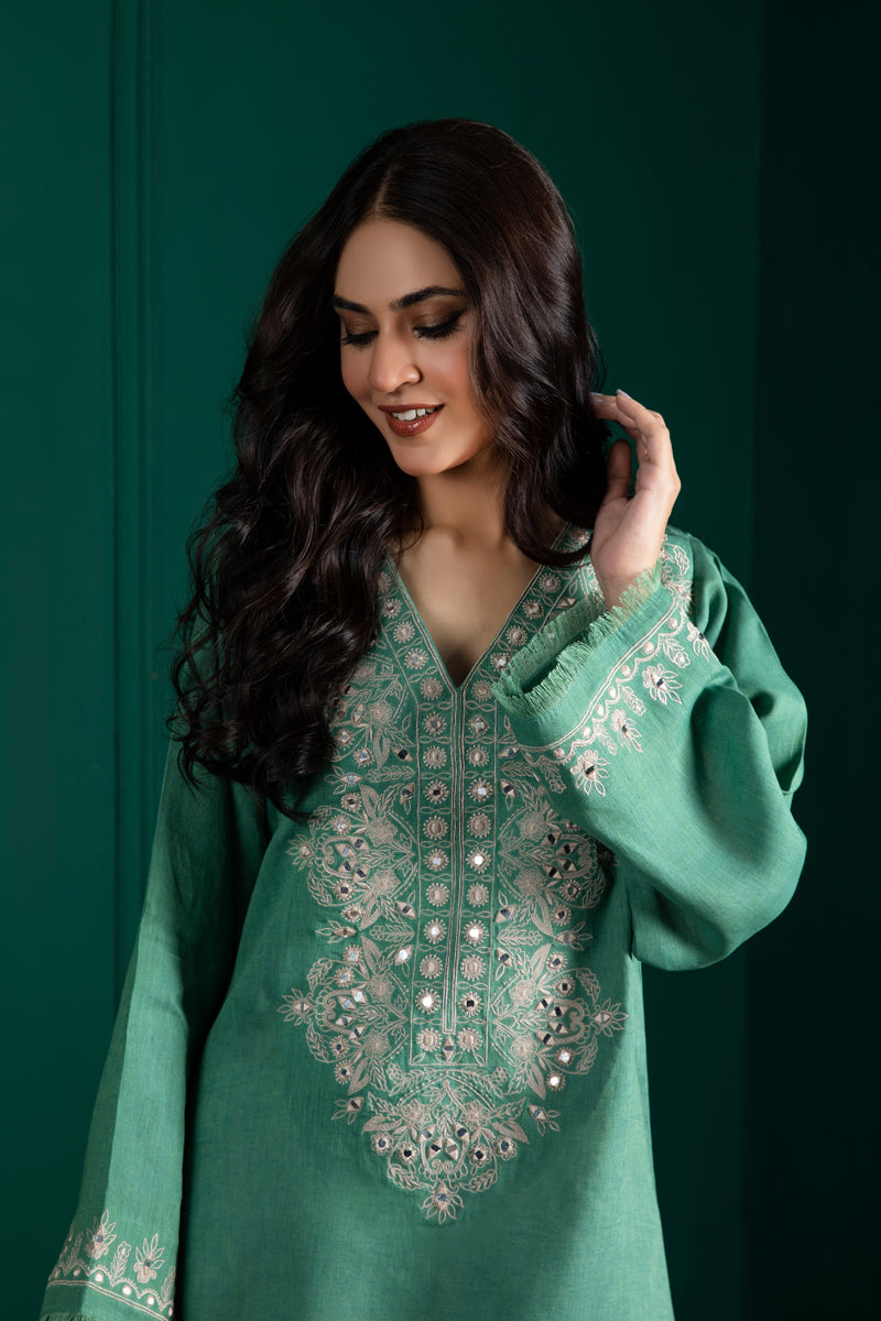 Our Daria kurta is a timeless classic, Relaxed Cut, Featuring one-toned mirror embroidery.