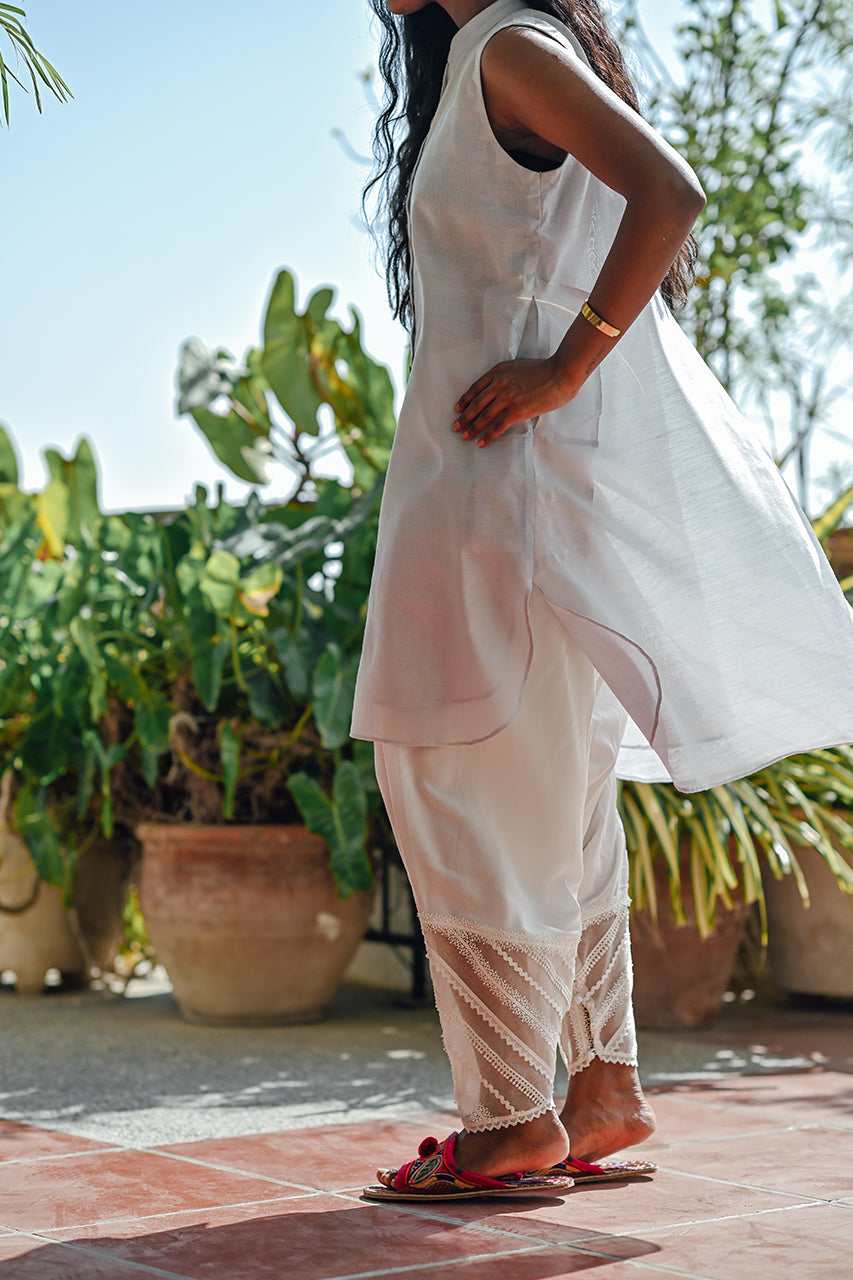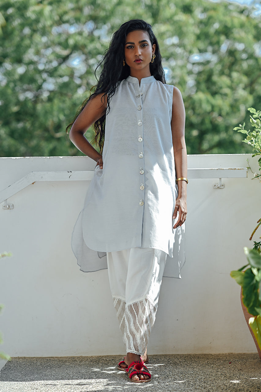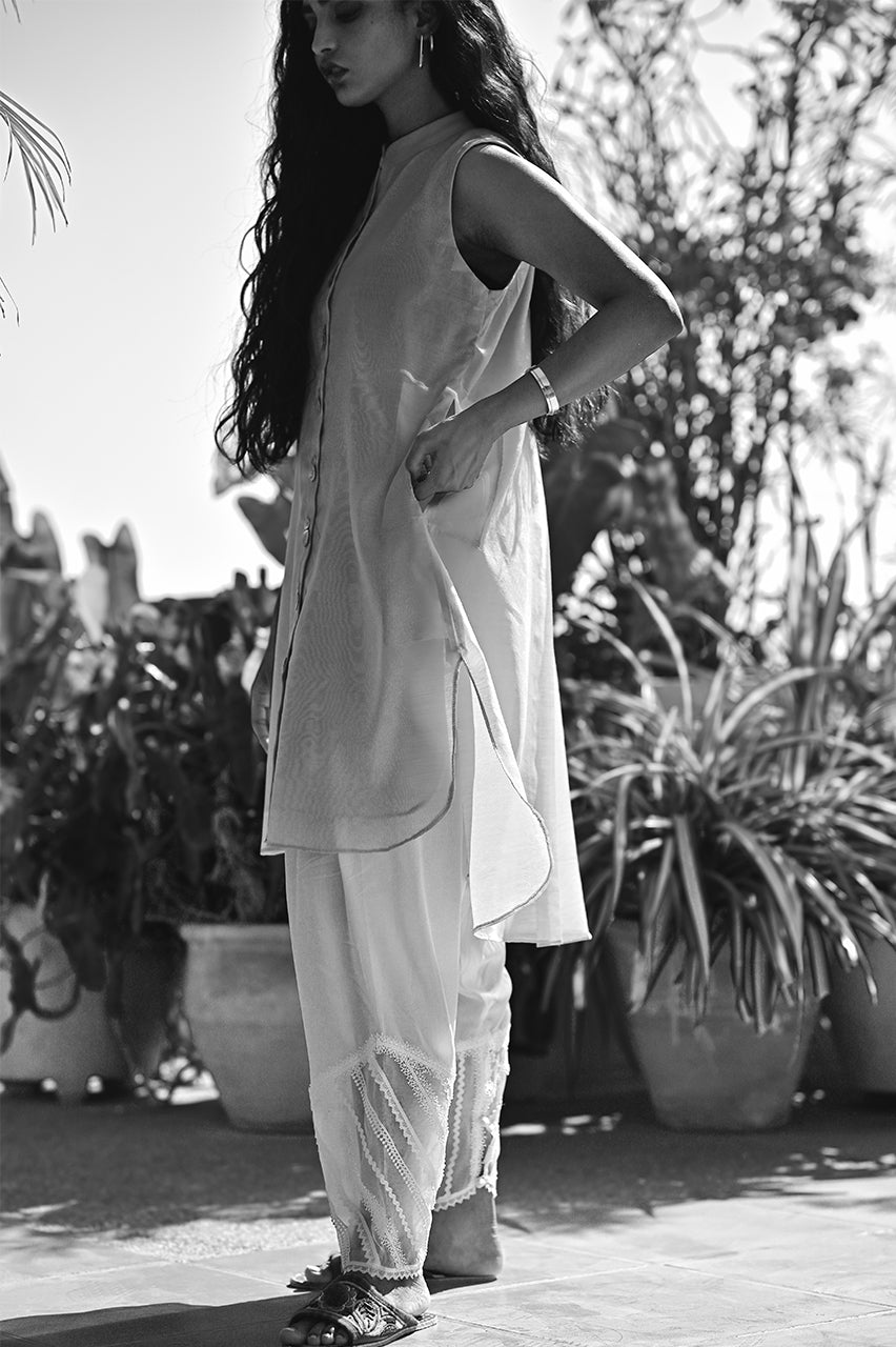 Delivery in 7 Working DaysCrafted in two layered paper cotton with kingri and tarkashi detailing, Feriha makes for the perfect summer affair.