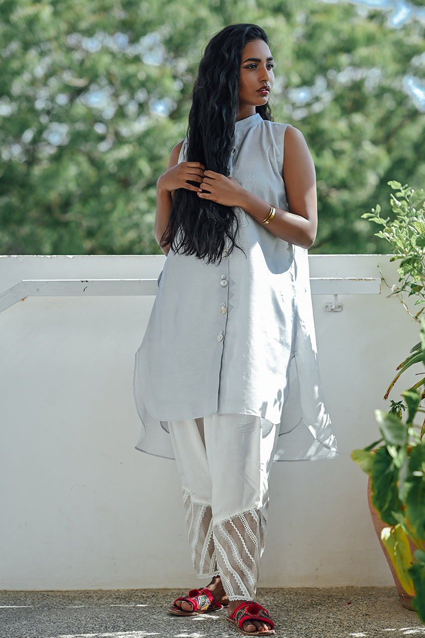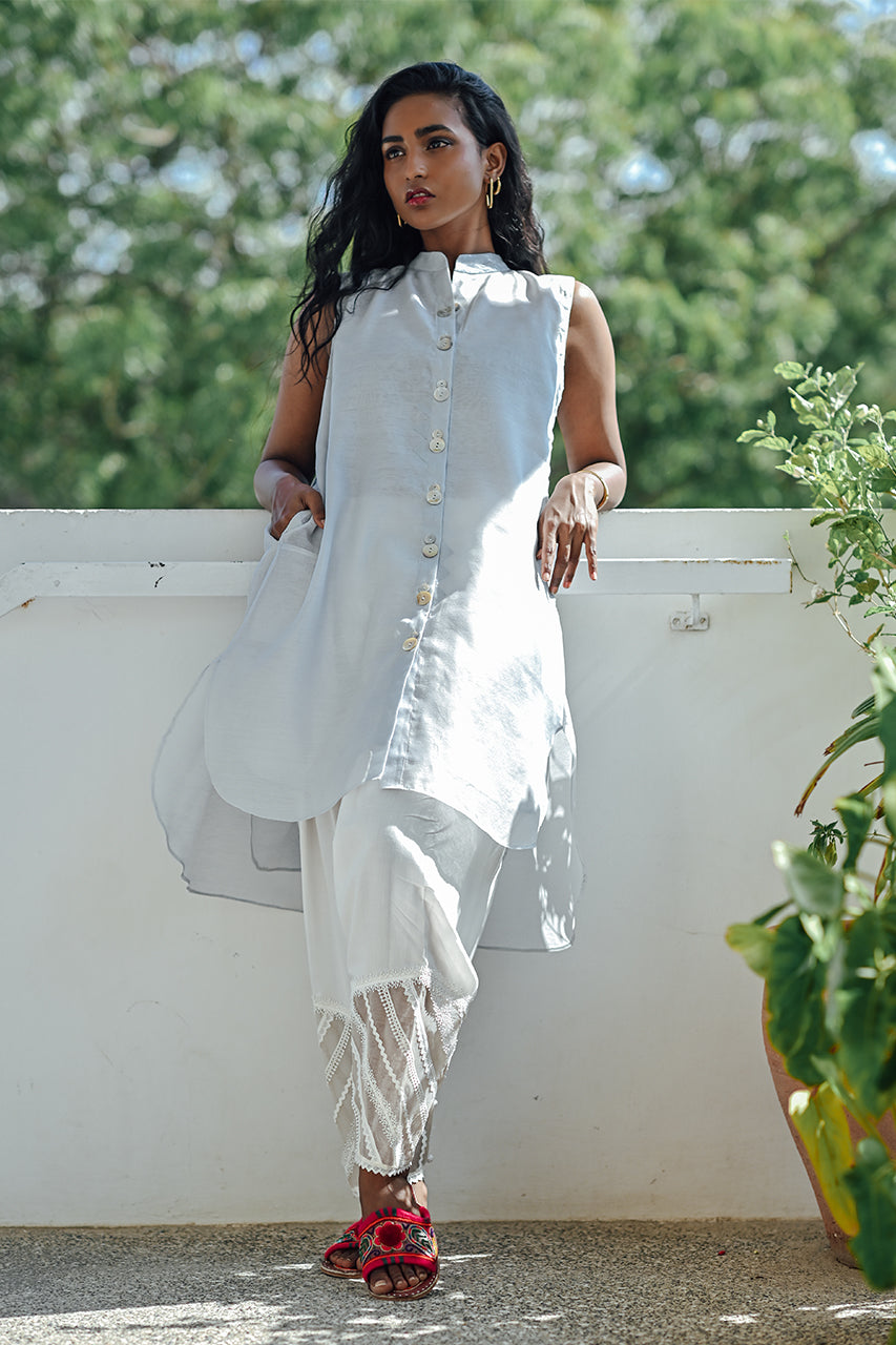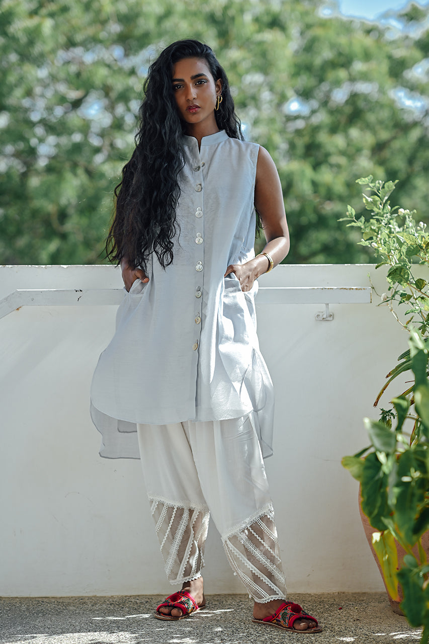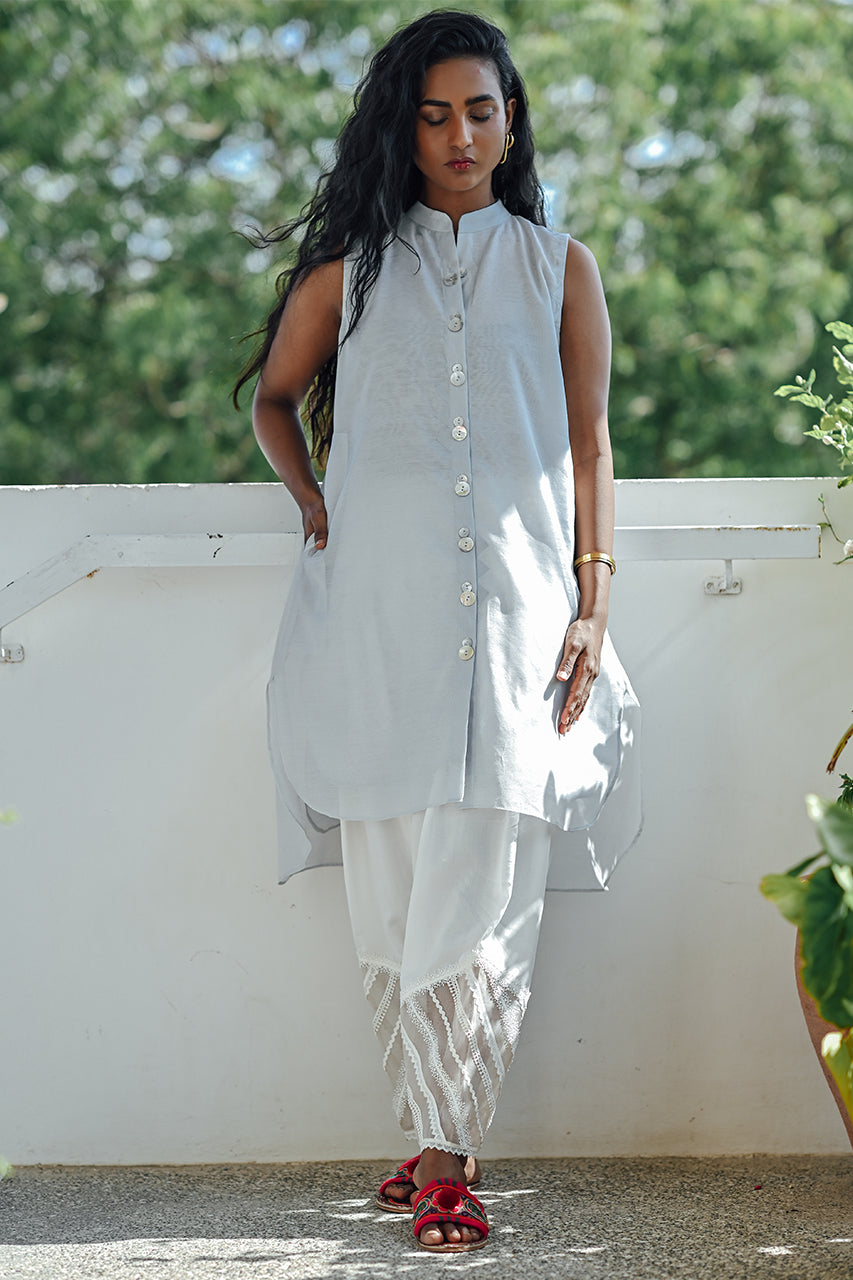 Delivery in 7 Working DaysCrafted in two layered paper cotton with kingri and tarkashi detailing, Feriha makes for the perfect summer affair.