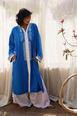 Hana is a relaxed cut, front open shirt with dori embroidery, Pair it with azaar or auraib pants for the quintessential Boho feel.