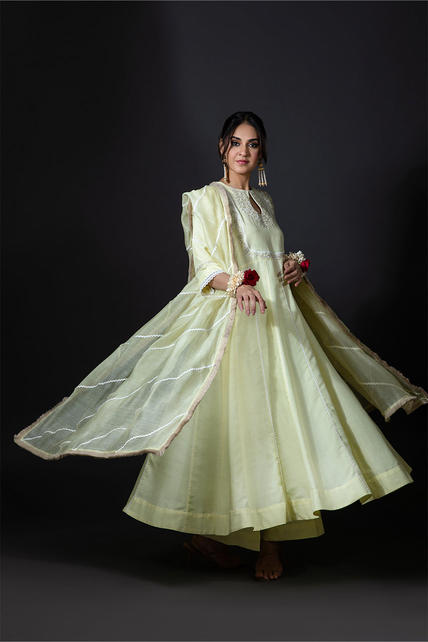 Kaalidar khaanam is crafted in the finest cotton silk and embellished with dori and zari embroidery.
