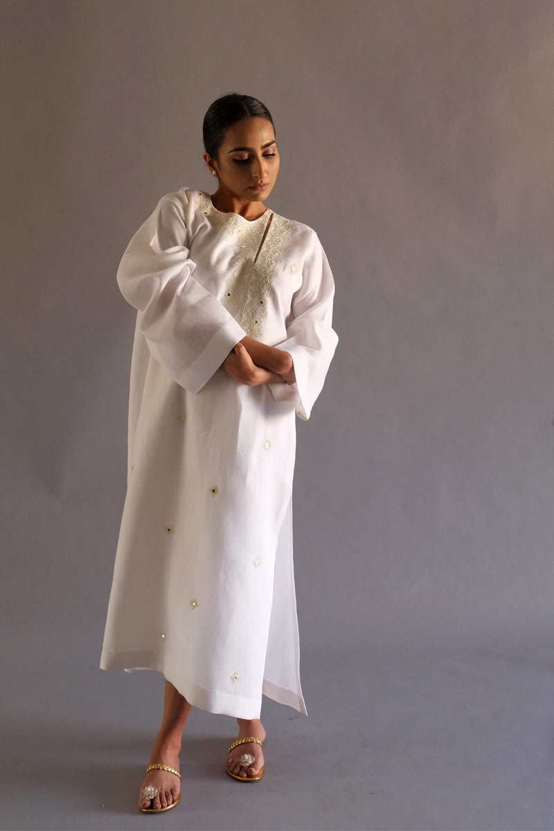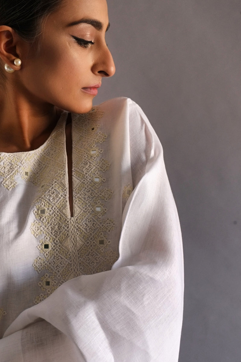 Relaxed cut, one-size Livia is an essential closet stable finished with mirror embroidery.