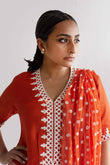 Introducing our exquisite Three-Piece Suit with Embroidery on the Neckline, paired with a Block Print Chiffon Dupattaâ€â€a perfect blend of traditional craftsmanship and contemporary elegance. Elevate your style with this meticulously crafted ensemble that promises to make a statement at any special occasion.