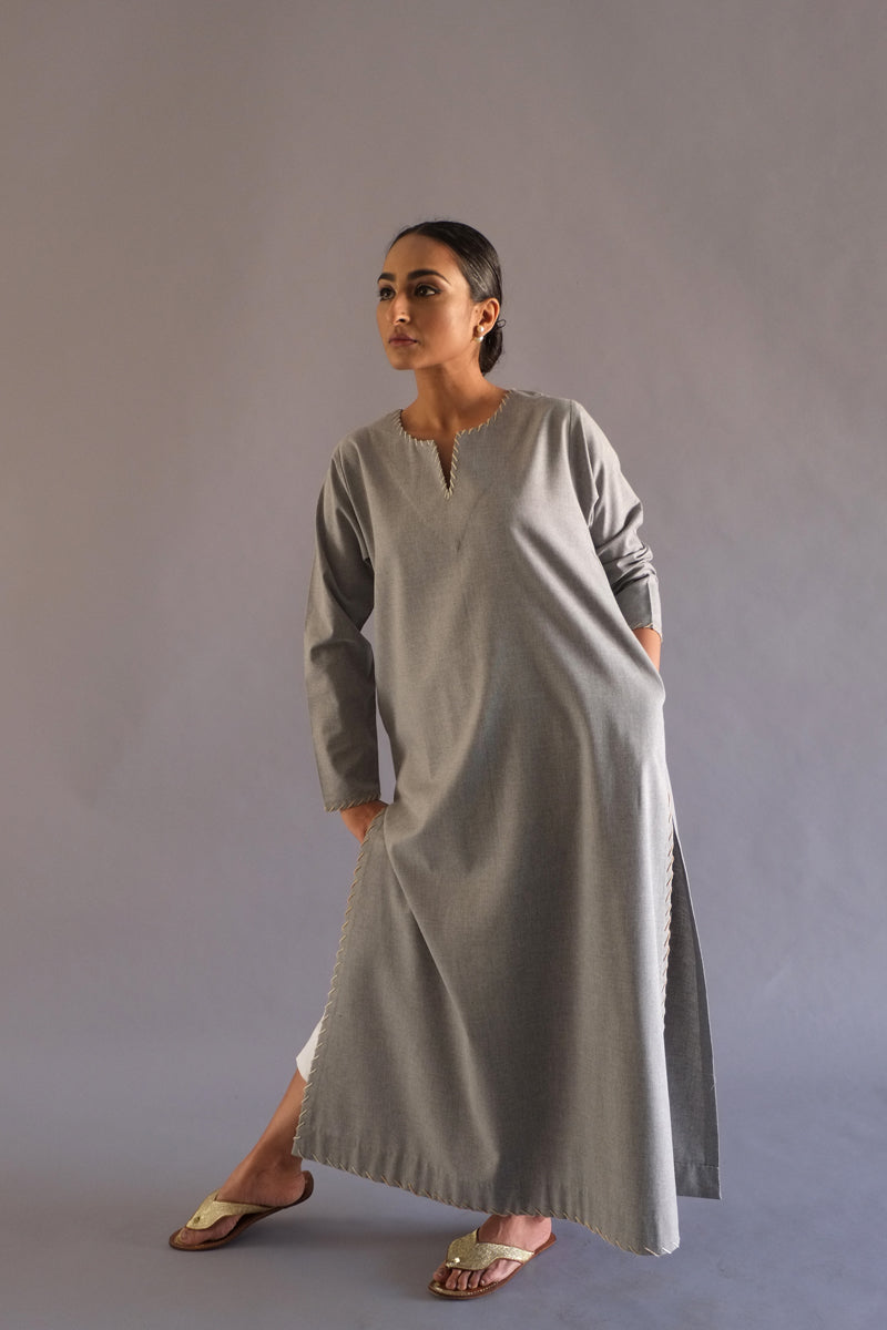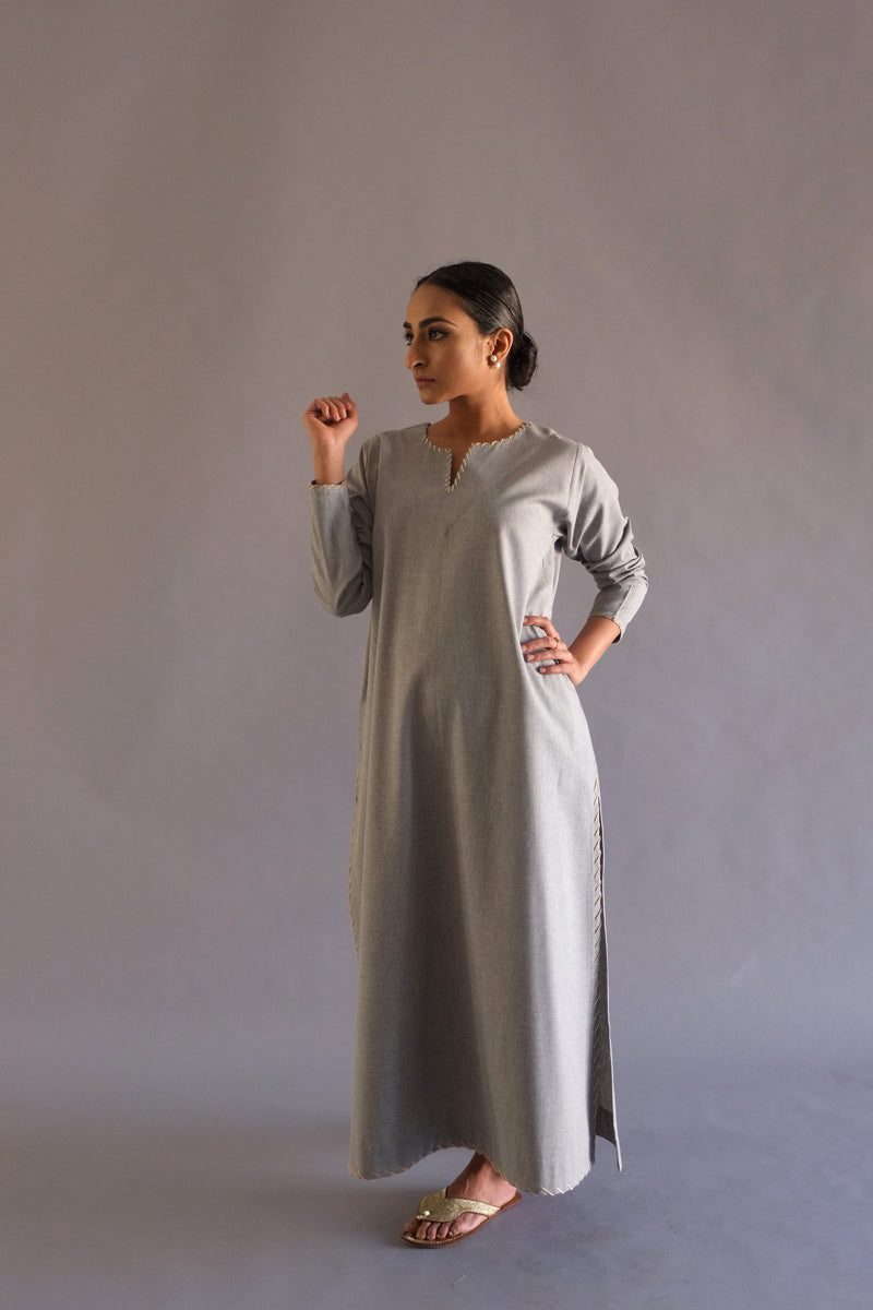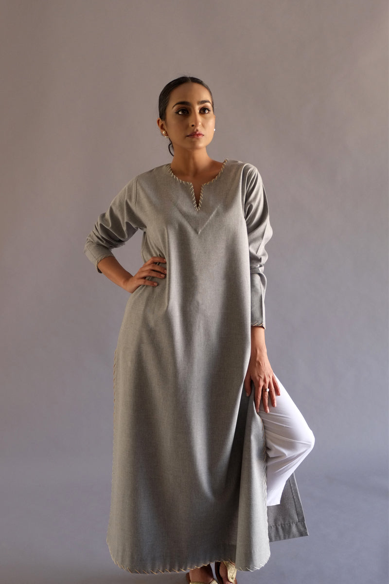 Mira is a everyday one size A-line kurta crafted in the softess cotton wool and finished off with wool embroidery detailing.