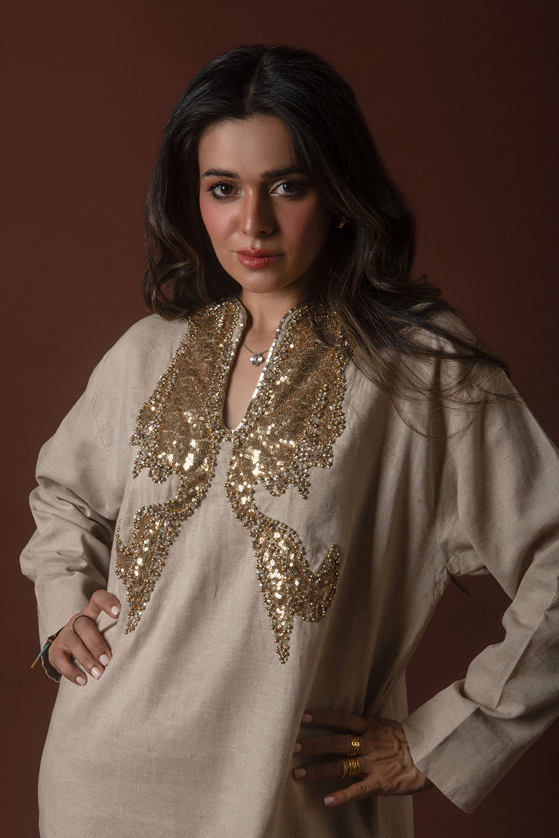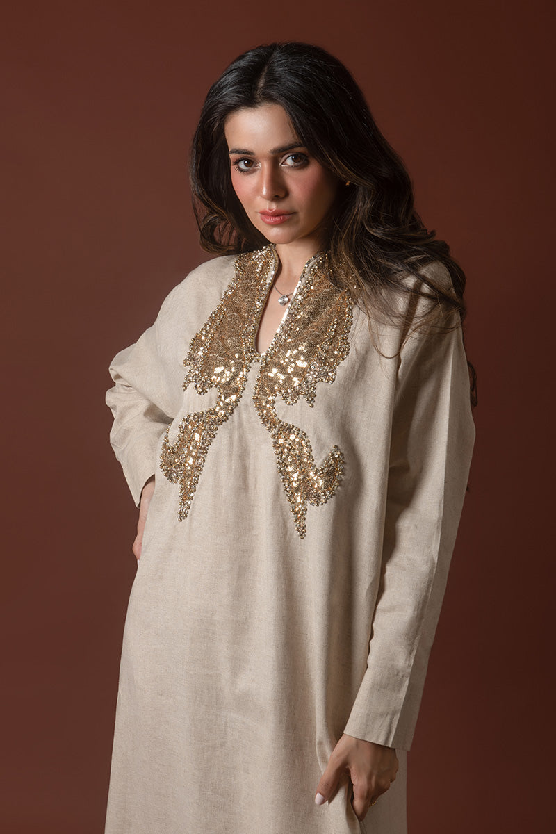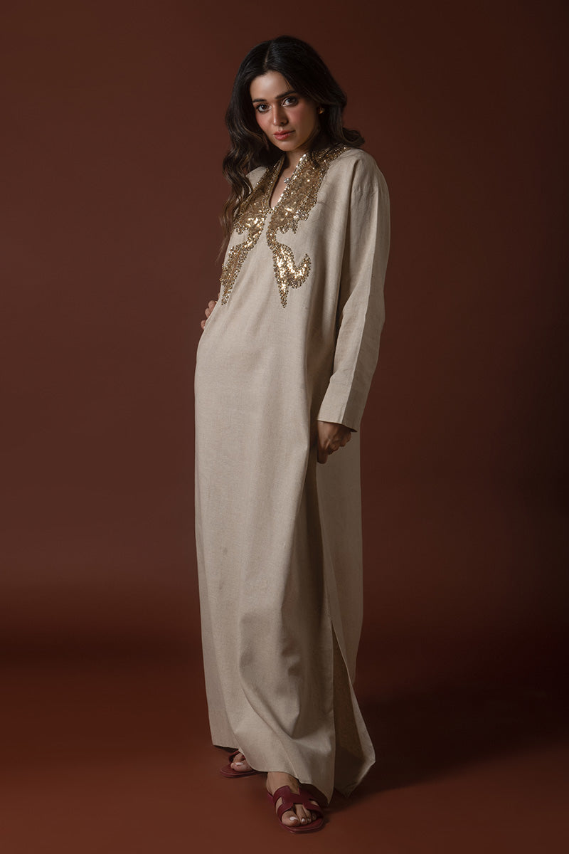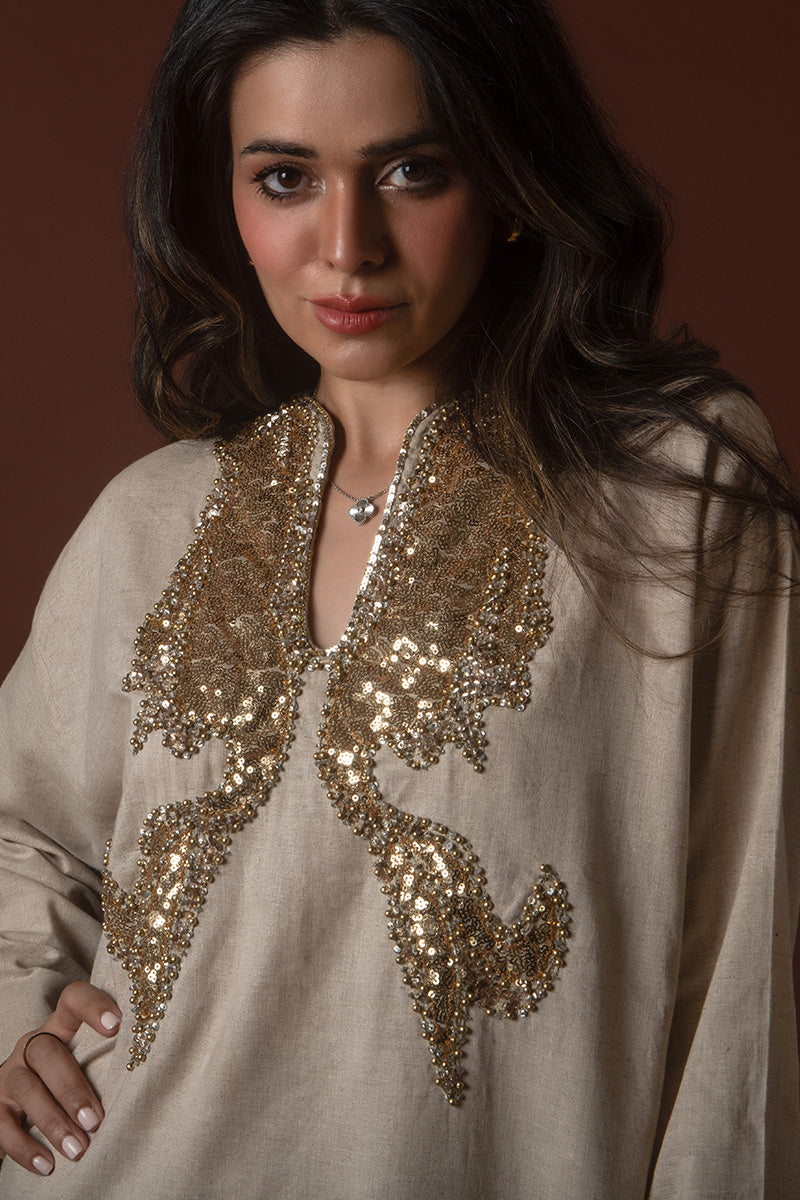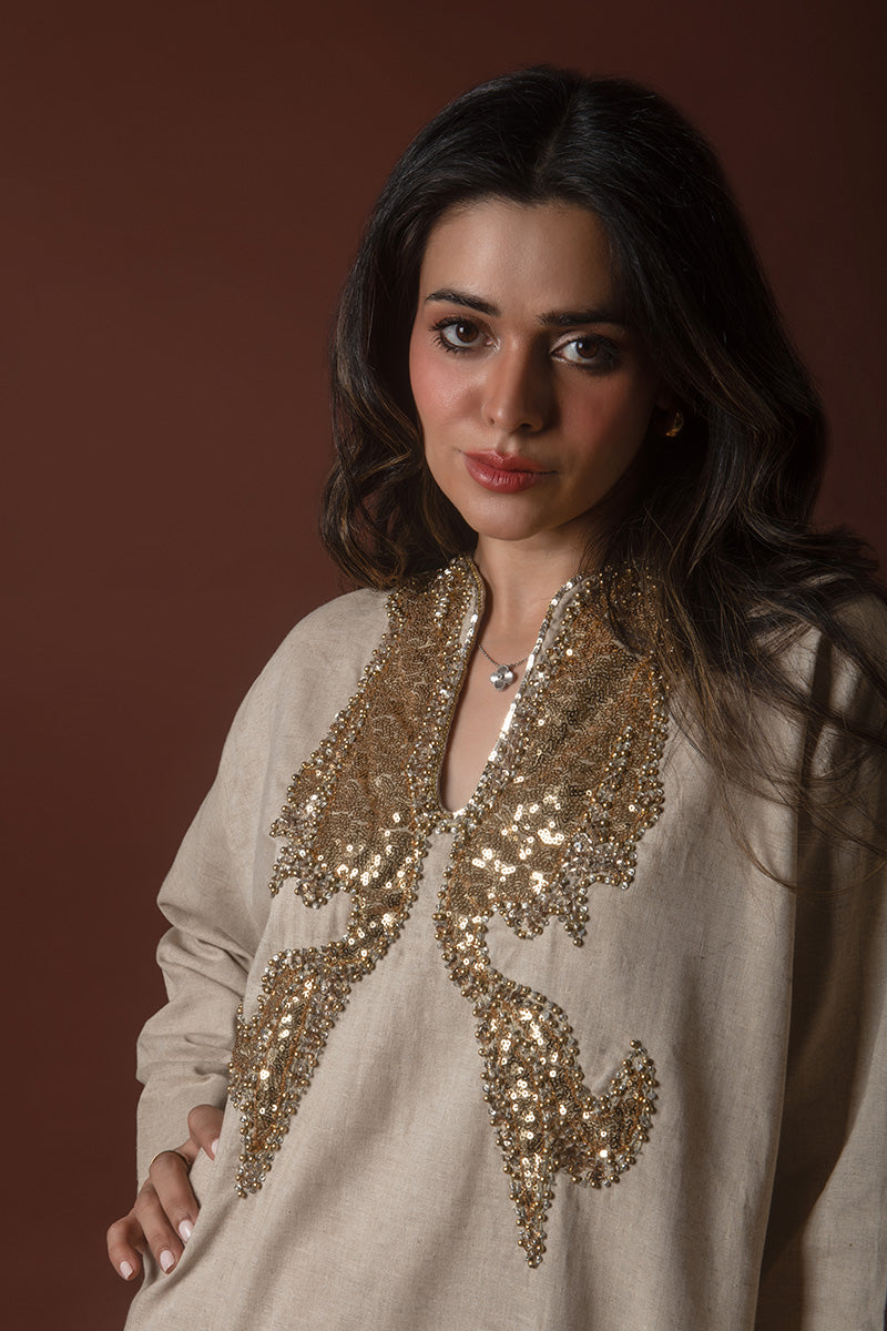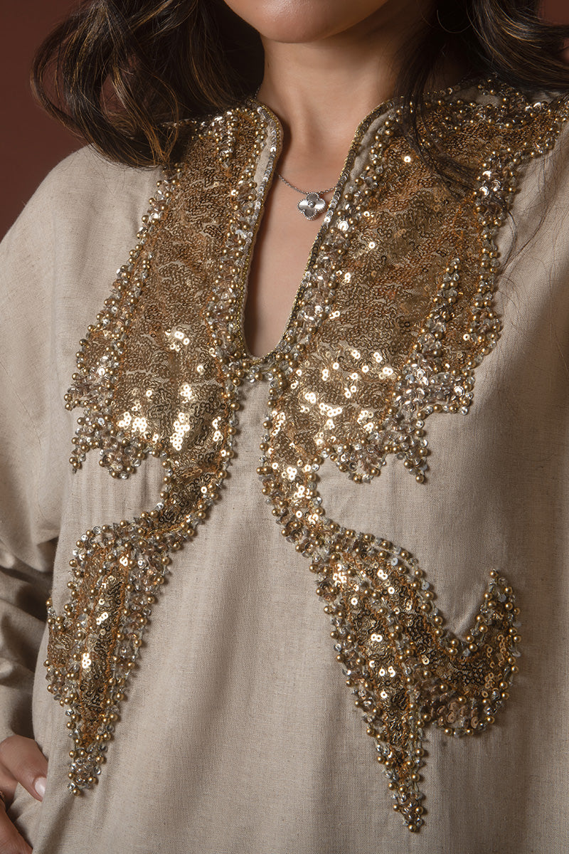 Introducing the Elevated Everyday Kaftan, a blend of timeless elegance and relaxed comfort. Crafted from luxurious Irish linen, this kaftan is the perfect choice for those seeking effortless style with a touch of sophistication. The natural texture of the linen offers breathability and a soft drape, making it ideal for both casual outings and refined gatherings. With its versatile silhouette and subtle details, the kaftan embodies the essence of understated luxury. Whether worn at home or out, the Elevated Everyday Kaftan is your go-to for chic, laid-back style with a modern twist.