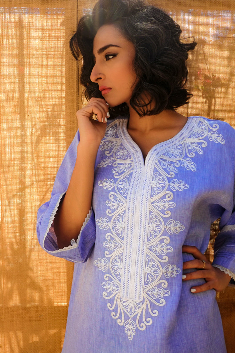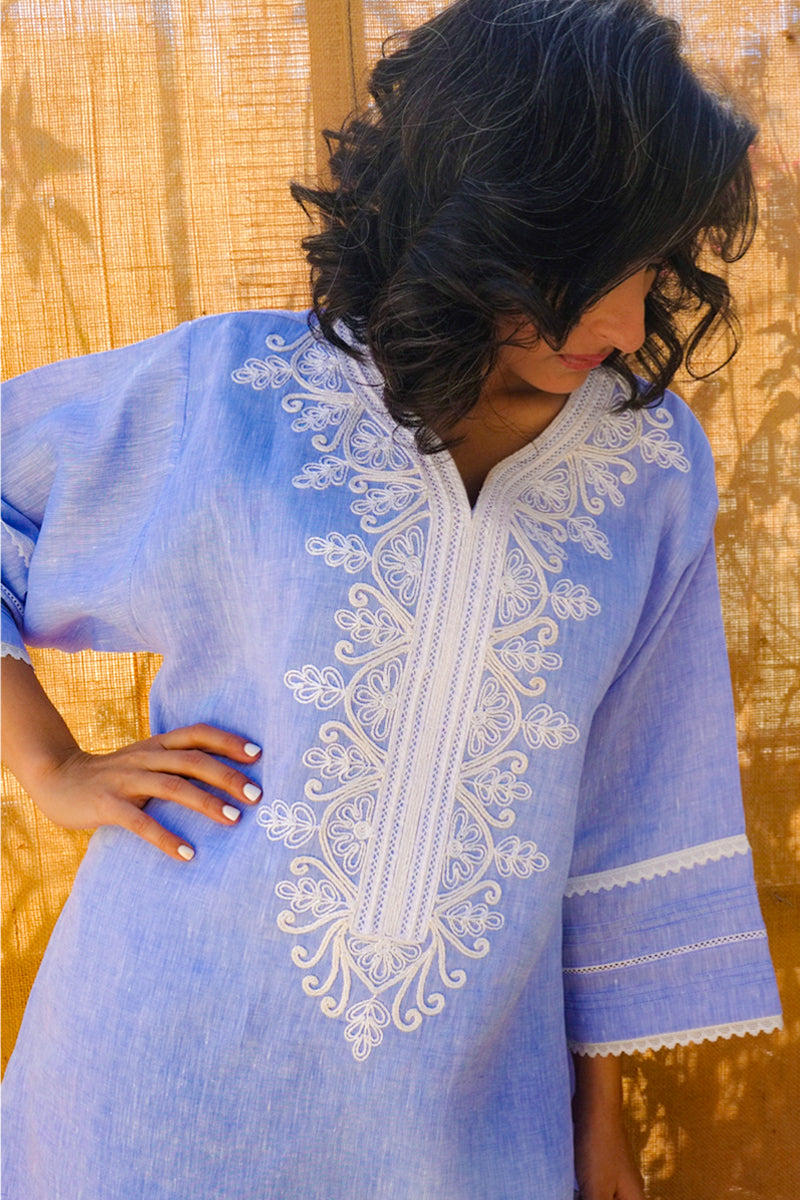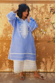 Yasmin is a Relaxed-cut linen Kurta with Dori embroidery and finished with lace detailing.