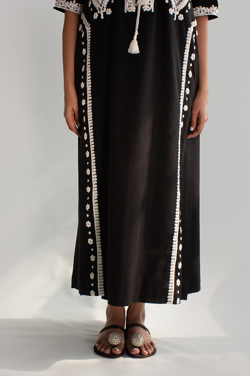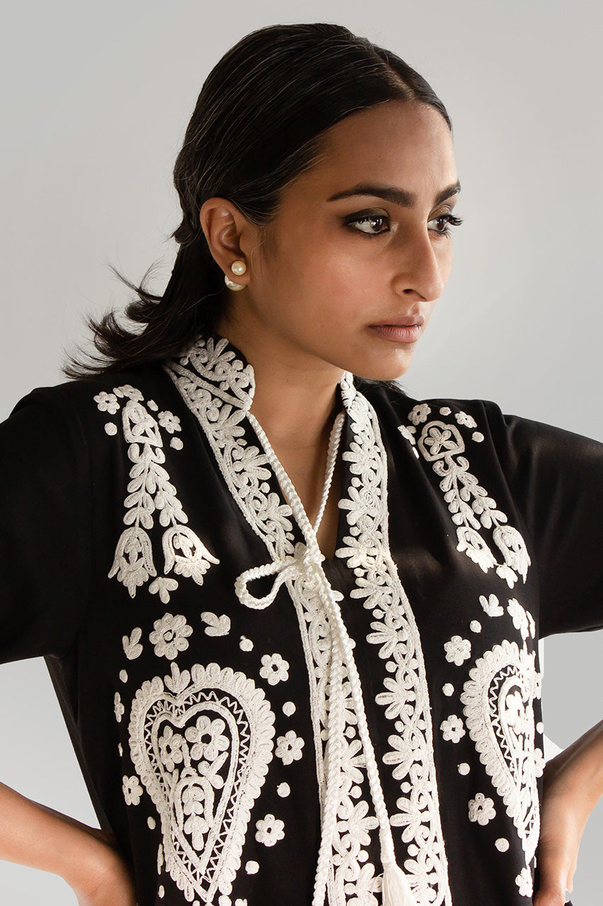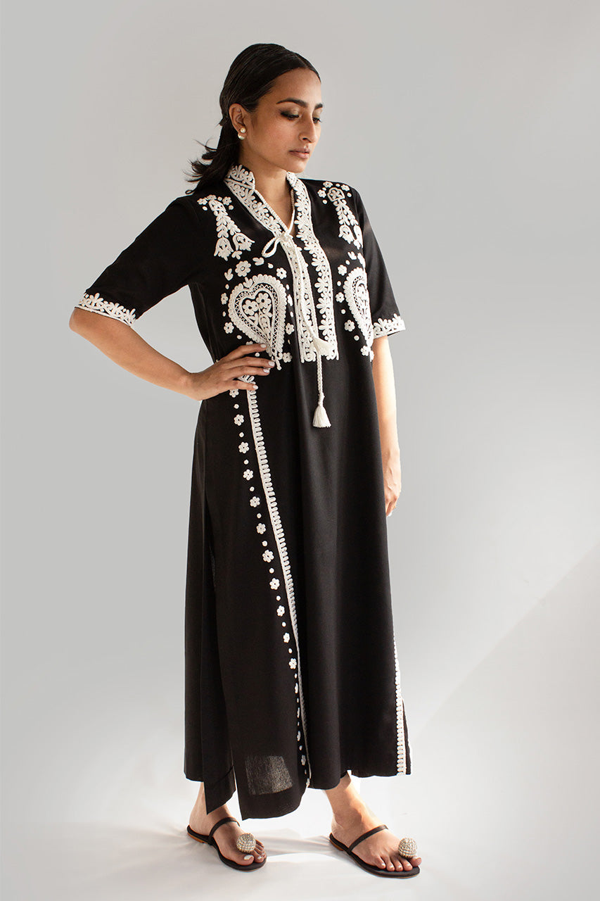 EVERYDAY ESSENTIALS - A meticulously crafted piece, the appliquéd and dori-worked kurta in Irish linen is a testament to artistry and sophistication. Fashioned from the exquisite Irish linen fabric, known for its breathability and luxurious texture, this kurta combines traditional techniques with contemporary design.